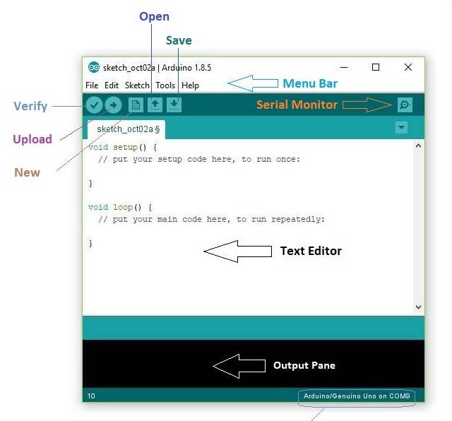 Start the Arduino IDE. You should see something like this: