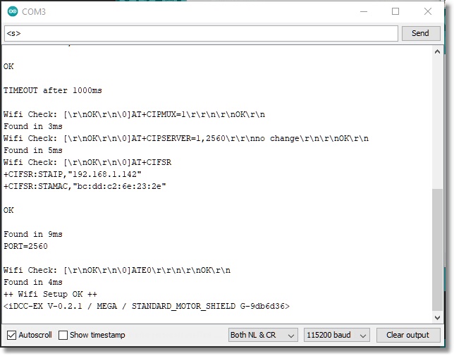 Now enter <s> (lowercase). You should see status information for your Command Station appear in the log.