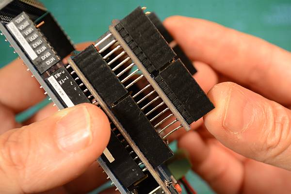 Now do the the other side. If all the pins are straight and lined up properly, hold both sides of the board and press it together gently (Fig 90:).