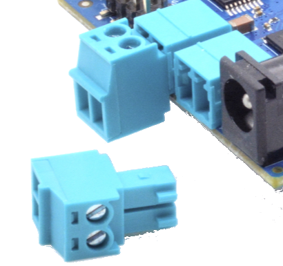 These are female pluggable terminals that accept a removable male screw terminal plug (included with your EX‑CSB1). Using the removable connectors allows for easy reconfiguration, testing, and placement of your command station. You can unsolder these connectors (or ask for a special order) and replace them with 3.5mm pitch screw terminals if you prefer.