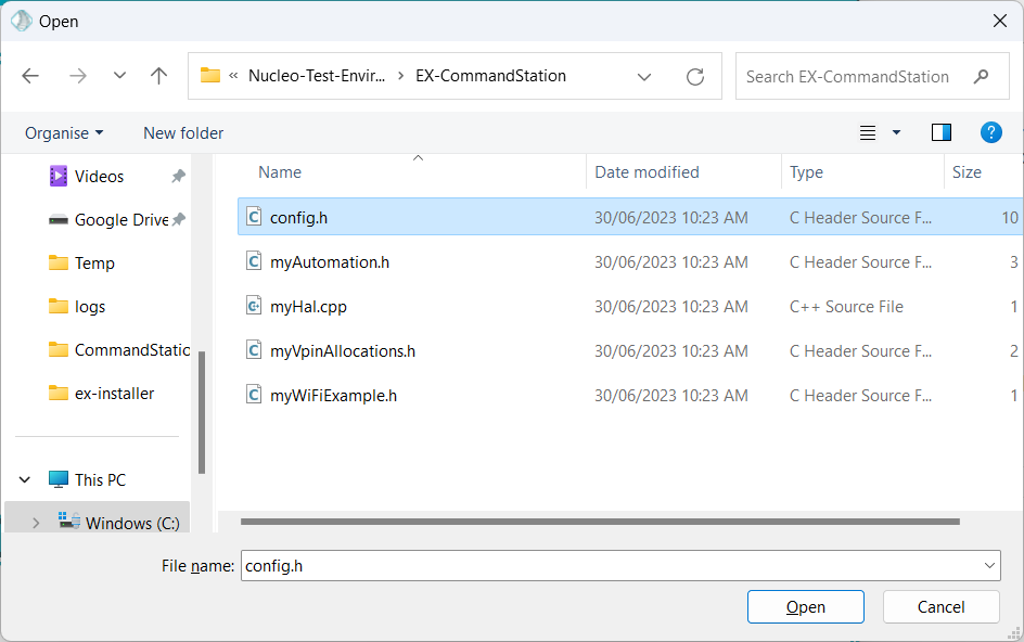 Note that if you did not enable any options requiring myAutomation.h, and did not enable CreatemyAutomation.h, you will only be able to edit config.h on this screen.