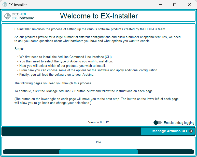 Our new installer has been written in Python with a view to being portable across as many operating systems as possible and continues to use the Arduino Command Line Interface (CLI) in the background to manage loading the DCC-EX software onto your Arduino device.