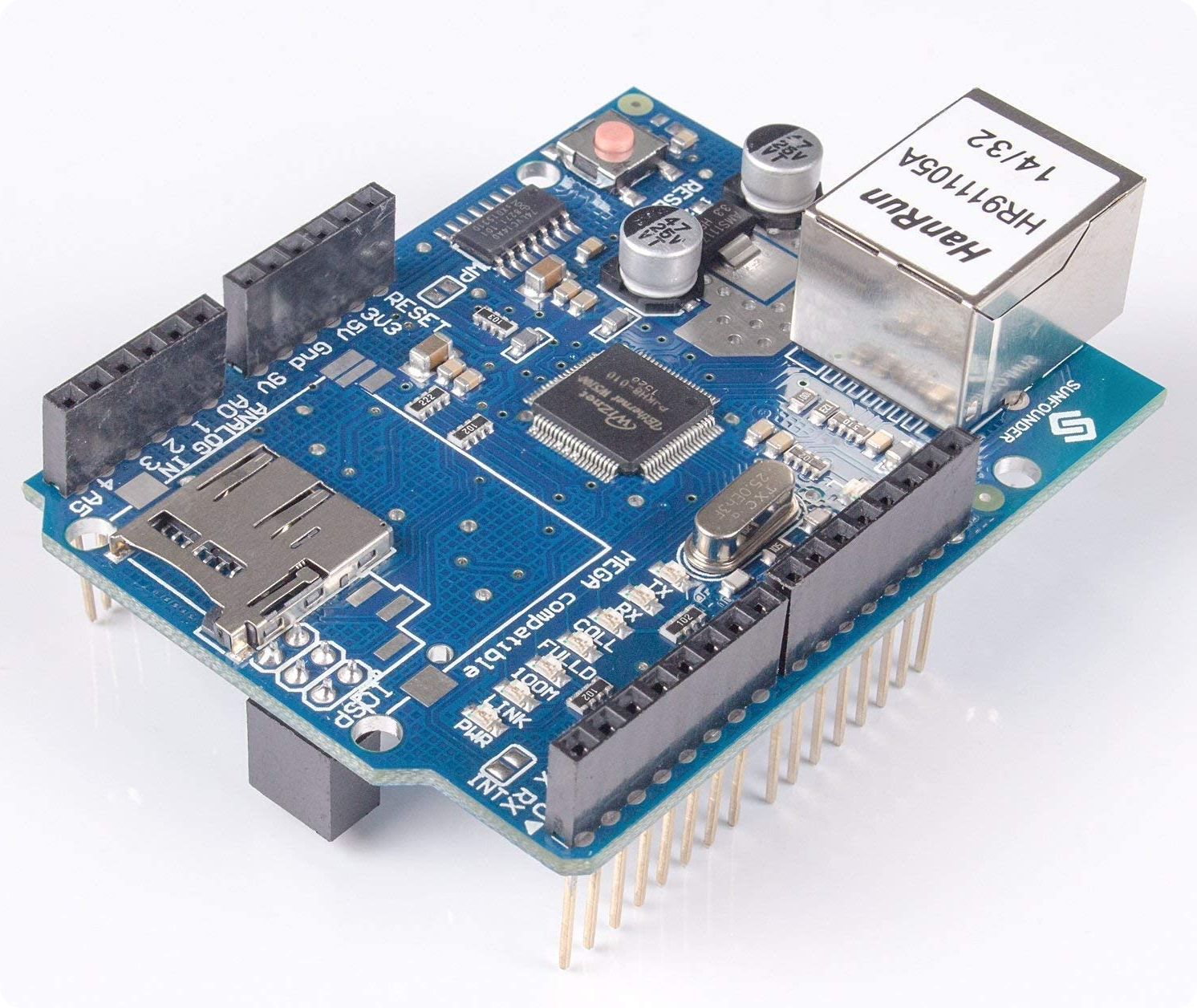 This board is tested and works. It is less expensive than the Arduino brand-name board and based on the Wiznet W5100 instead of the W5500. It must be the first shield in the stack because it uses the ICSP header pins.