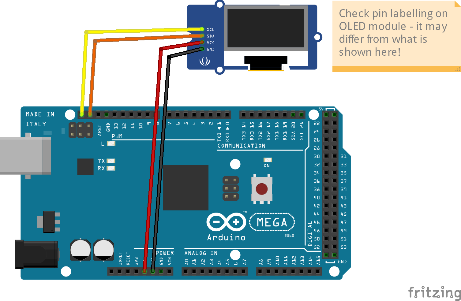 Fig 229: Connecting an OLED Display to an Arduino Mega