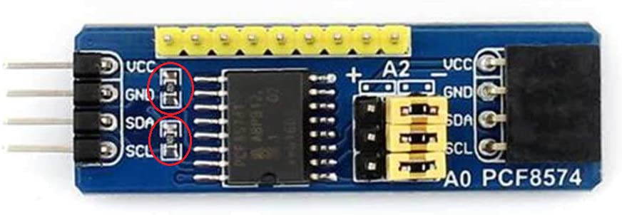 Fig 235: Location of Pull-up Resistors for PCF8574 Module (ringed in red)