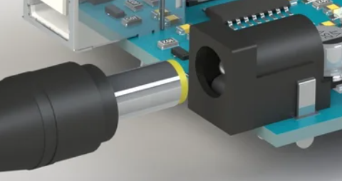To power up the EX‑CSB1, just plug your power supply into the mains power (aka wall outlet) and connect the barrel end to the Command Station. Make sure your power supply matches the needs of your setup: the voltage should be between 12V and 25V DC, depending on the scale of your locomotives, and it should provide at least 2A of current with good over-current performance and voltage stability.
