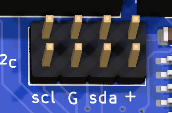 IMPORTANT: The pin order on these two rows are different from the OLED header, pay attention to the pin order when using Dupont female wires. The correct order for this header is SCL, GND, SDA and V+ as labelled on the board.