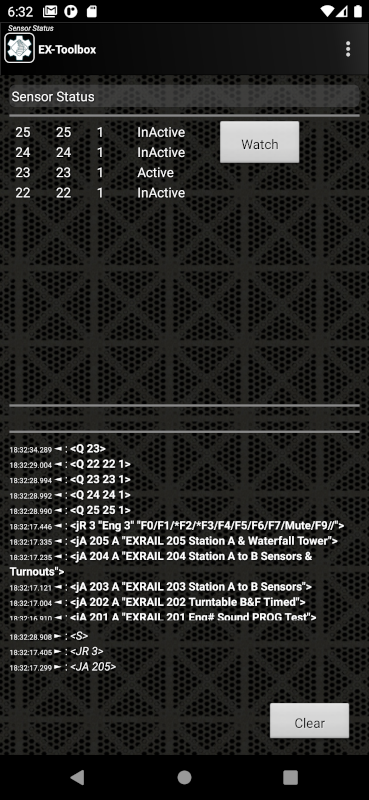 The Watch button is generally not needed, but will force EX‑Toolbox to check the available sensors on the EX‑CommandStation again.