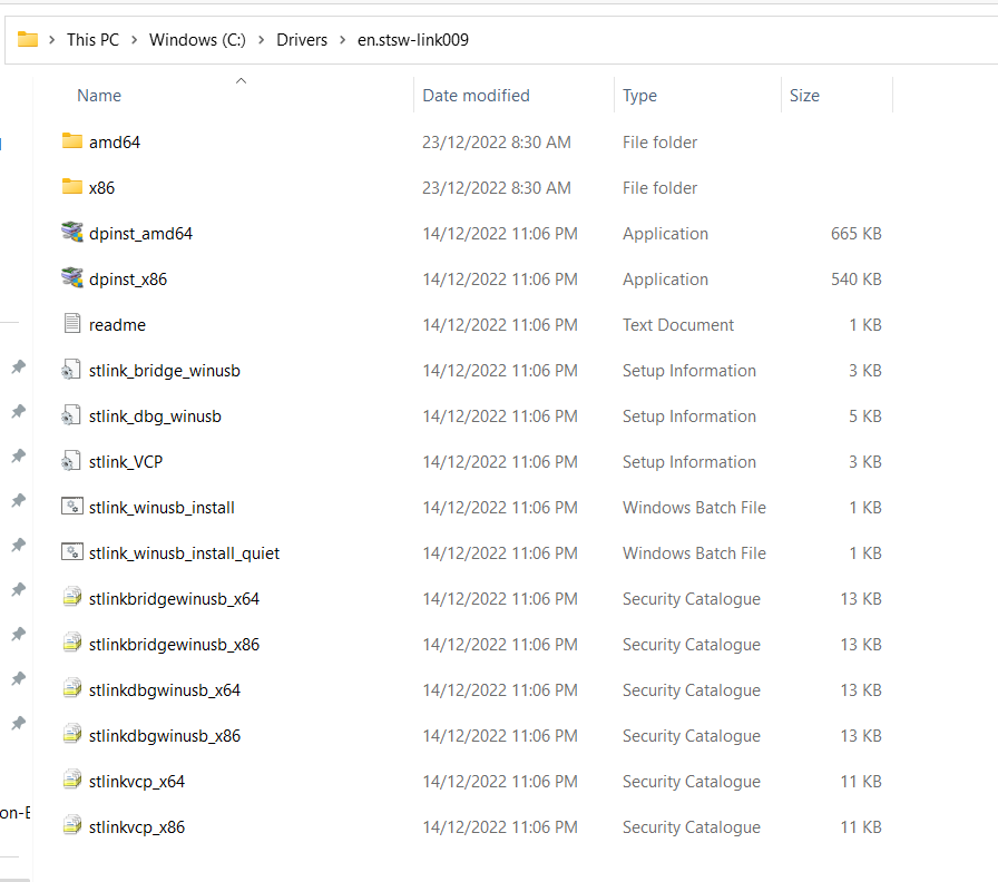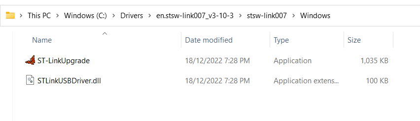 Once you download and extract this zip file, you will need to install the STLink drivers located in the “en.stsw-linik009” folder.