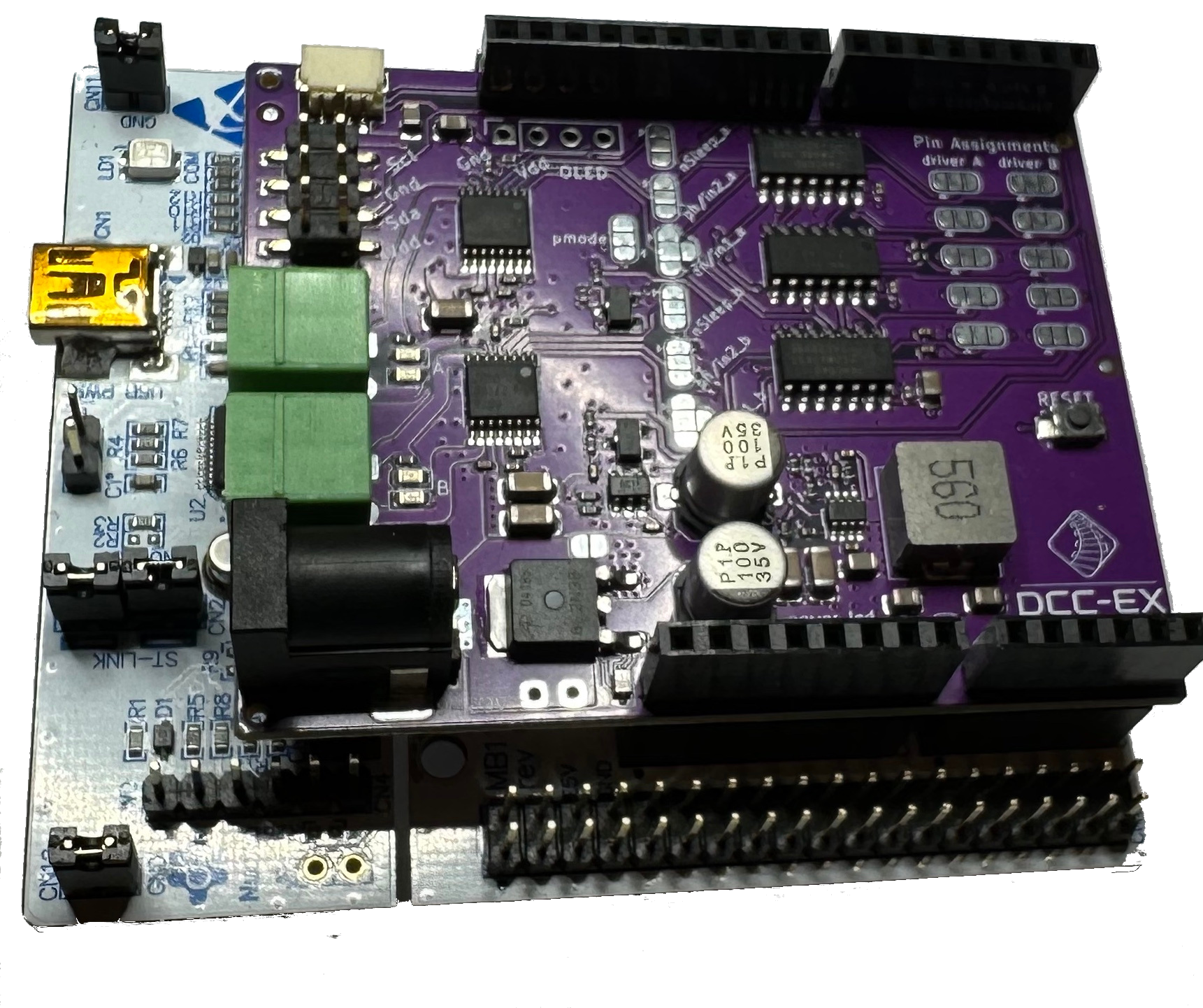Note also that the DCC-EX EX-MotorShield8874’s onboard regulator is by default set too high for the SAMD21 Dev Breakout at 7.2VDC. Adjustments to resistor R206 will be needed to lower the output to a safe 6V instead.