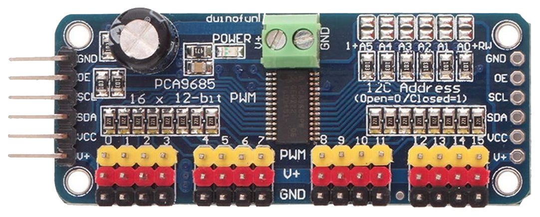 To connect a servo module to EX‑CommandStation, you first need to get a module, based on the PCA9685 chip.