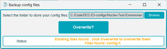 You will be prompted to select a folder, and if the chosen folder already contains config files, you can overwrite these, or you can select an alternative location.