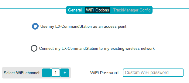 You can configure the WiFi for EX-CommandStation two ways: