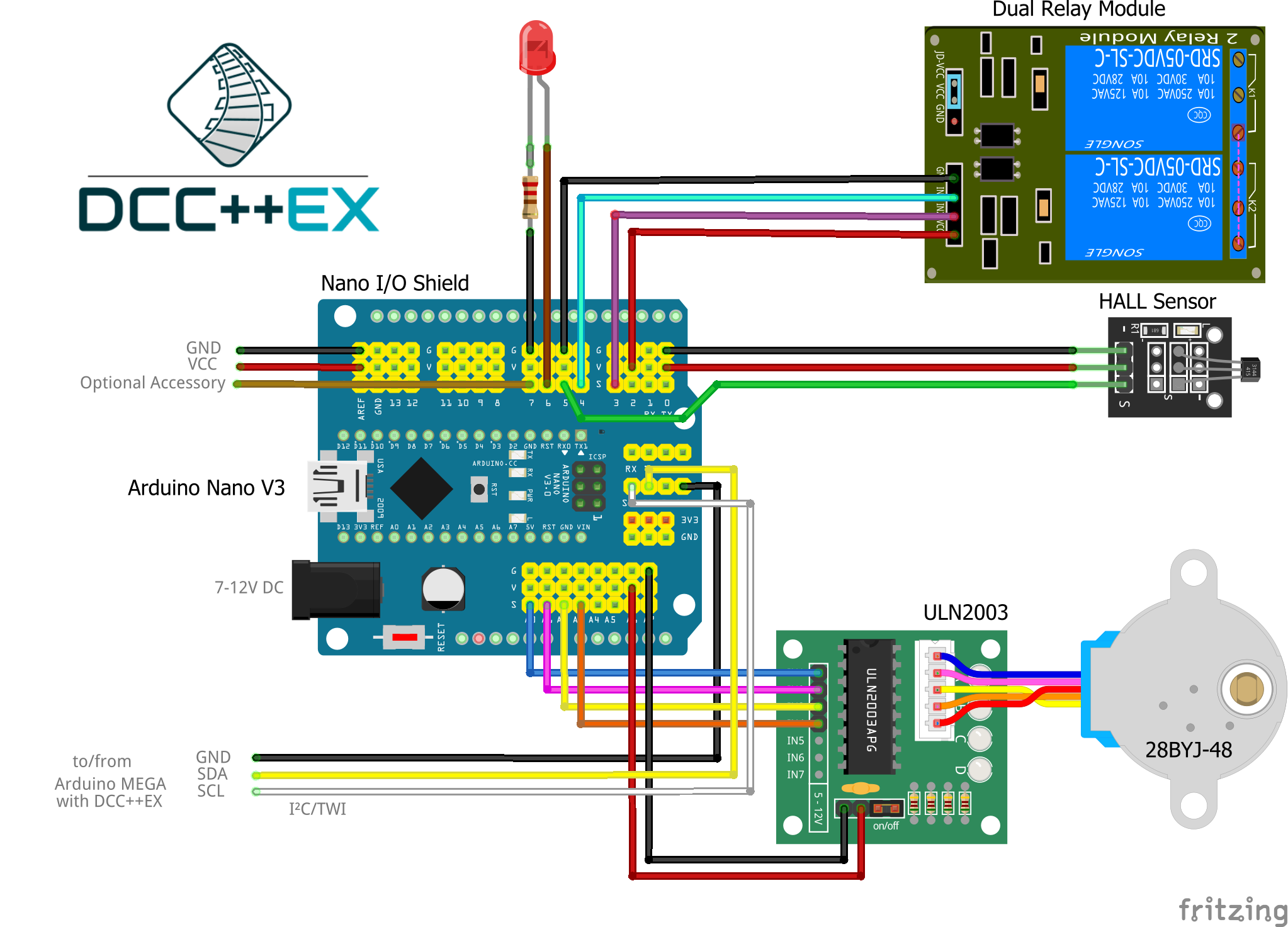 For assembly, we will assume the default ULN2003/28BYJ-48 combo is in use with an Arduino Nano V3, a standard 3 pin Arduino compatible hall effect sensor, and a dual relay board.