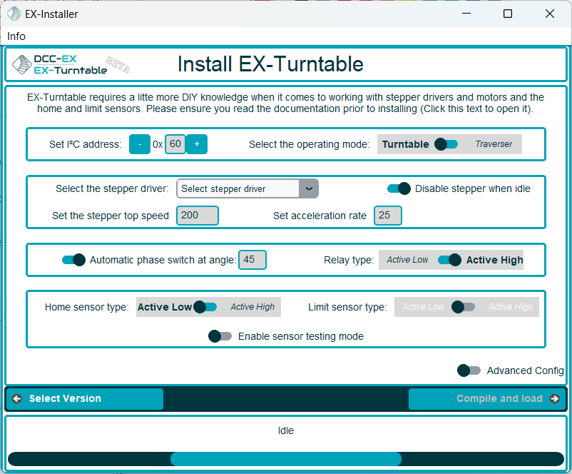 At this point, you should have a fully assembled EX‑Turntable with the software loaded, a default configuration, and the device driver installed and configured in your CommandStation.