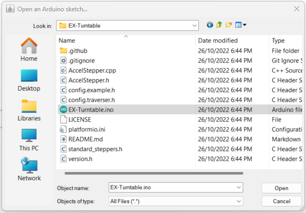 If you receive compile errors that the file “IO_EXTurntable.h” is missing when attempting to upload the CommandStation software later in this process, this indicates you are using the incorrect version of EX‑CommandStation.