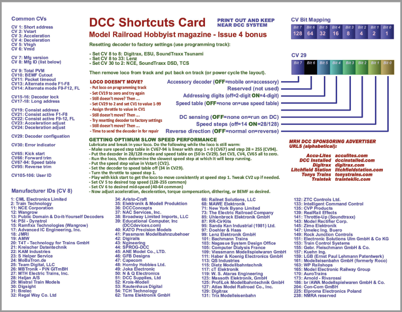 DecoderPro to build and maintain DCC Engine Rosters and read, write, compare & maintain decoder CV’s