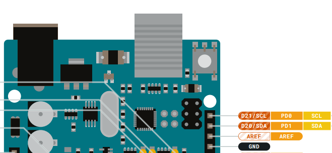 If you have more than one device, then there are a few options open to you. Some modules (PCA9685 and PCF8574 for example) have I2C pins at both ends of the PCB, so you can use one set of pins to connect to the Arduino and the other set to connect to another device. You can chain multiple devices, subject to the restrictions described in sections for Cabling and Pull-ups.