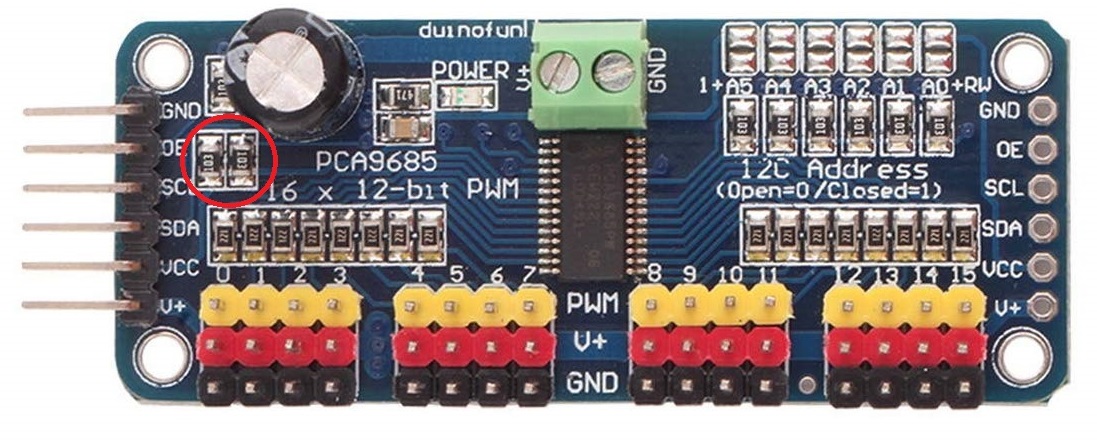 Figure 225 Location of Pull-up Resistors for PCA9685 Module (ringed in red)