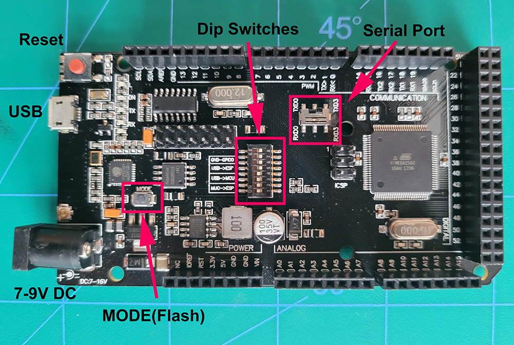 c. Set the switches on your Mega for flashing