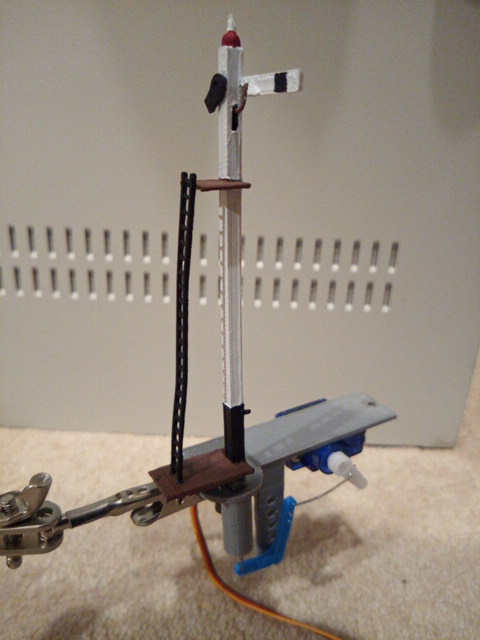 And in the next picture you can see a servo that operates a semaphore signal. The signal, and its servo mounting bracket, were 3d-printed on a Creality Ender-3 printer.