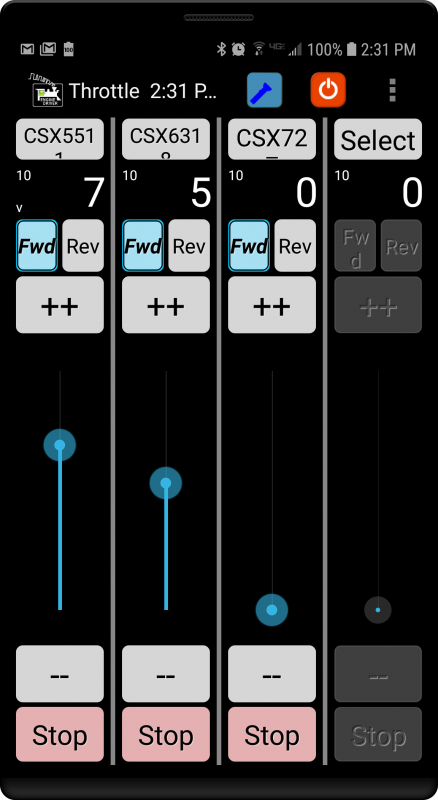 From Steve: I set speedsteps to 10, change amount to 1, repeat delay to 9999, horizontal switching layout, throttle web view. I acquire loco/consist using my phone, then dim & lock and put phone in my holster. Then I can “bump” the joystick up and down 3,2,1,0,-1,-2,-3, easily keeping track of the current “notch”. 1 is coupling speed, 2 is switching/yard speed, 3 is mainline. If I’m at home, I put the Conductor view in the web and I have my work for each location.