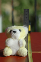 To my help I had four models, Mr. Pink Squid from Hastings, Great Britain which was seated front. Behind him Eyoore from McDonalds took the main seat. Just behind him Mr. Yellow Bear and Mr. Moose took a seat, both from Sweden. They sat on a white seamless background made out of an old projector screen. The stage was lit with two tungsten lamps. The main light to the left of and behind the camera was a 1000 Watt lamp (very hot!). To the right and slightly in front of the camera was a 150 Watt lamp.