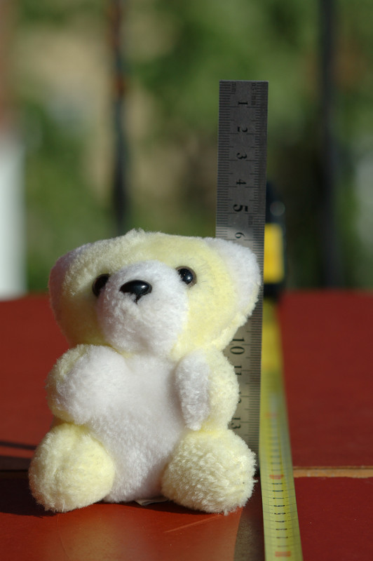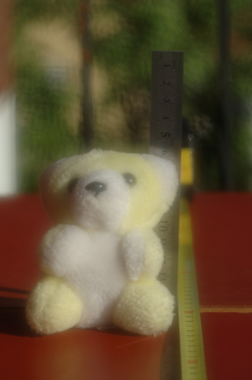 Focus was set on Eyoores right eye (left from the camera position) and three pictures were taken at each aperture setting, the first with the DC-feature set to neutral, then one with it set to the matching working aperture FRONT and then REAR. This was repeated at the working apertures f/2.0, f/4.0 and f/5.6.